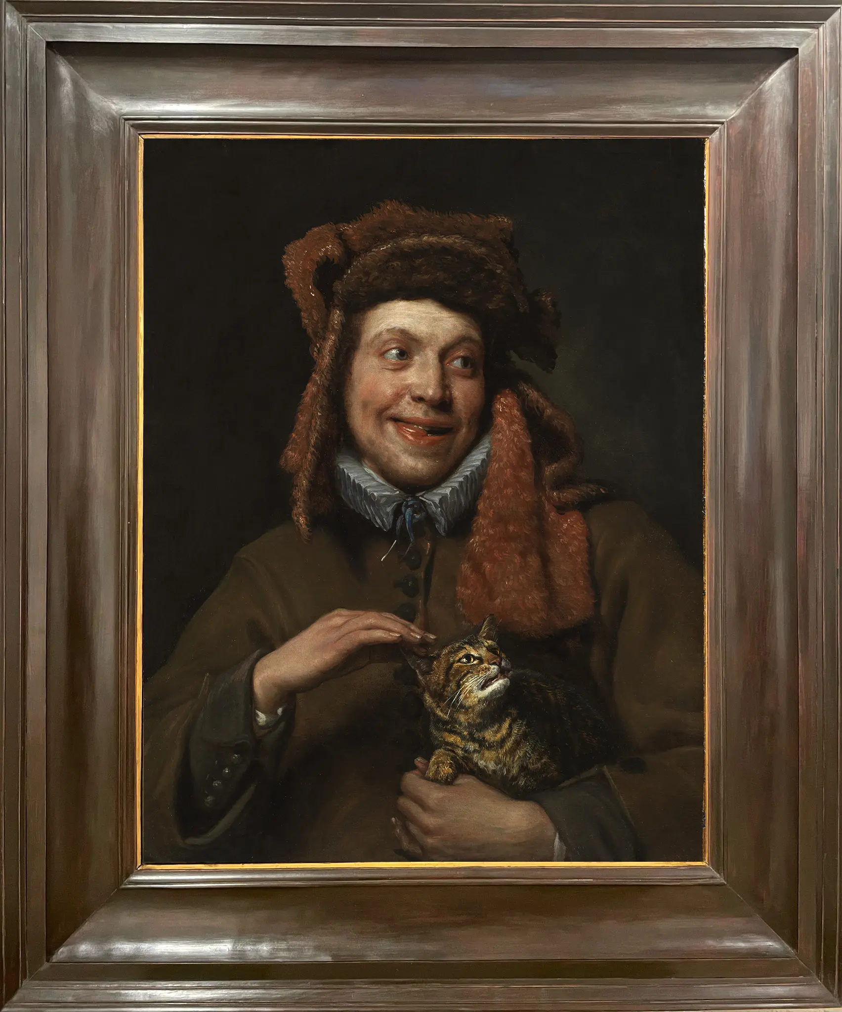 The Allegory of Touch, in which a young man is captured in a moment of pure stupefaction as he caresses a cat nestling in his arms, was created by the Flemish artist Michael Sweerts as one of a series of five paintings representing the Senses: taste, touch, hearing, smell, and sight, all portrayed as young men in fanciful headgear accompanied by animals relating to the senses they personify (save Smell, who holds a brazier of incense). Although the allegories of Sight and Taste were attributed to Theodore Rombouts working together with the animal painter Jan Fyt when they were sold in Berlin in 1911, Rolf Kultzen correctly gave the series to Sweerts in his 1996 monograph on the artist, an attribution currently supported by Sweerts specialist Lara Yeager-Crasselt. Although Smell is now in the collection Akademie der bildenden Künste, Vienna, lamentably, Sight, Taste, and Hearing are known today only through black and white reproductions. The reappearance of Touch thus marks a major and exciting rediscovery.