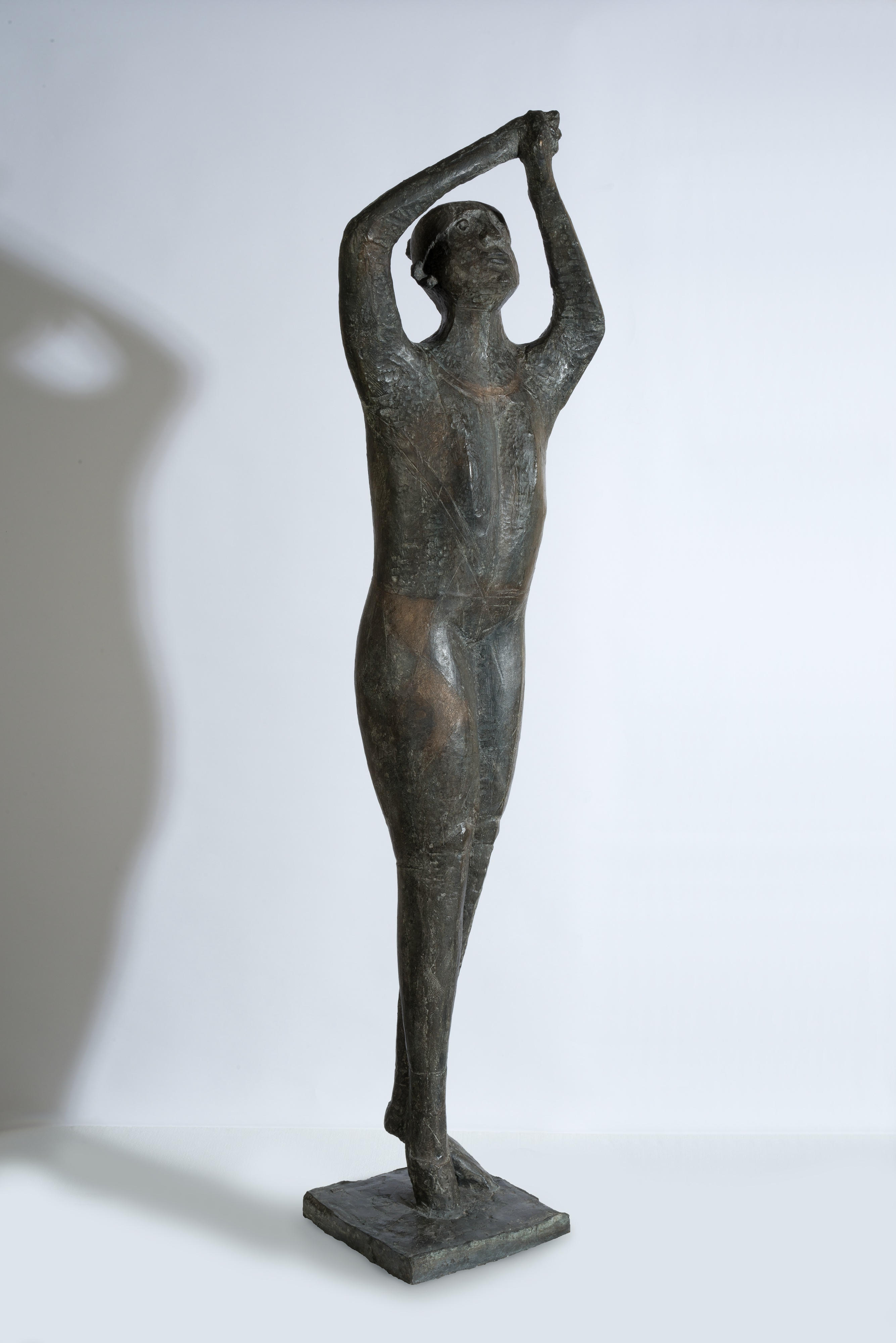 In the decade following the Second World War, Marini explored new articulations of forms. In series like the Jugglers, made between 1953 and 1956, he experimented with the sense of blocked motion and tension in the figures, focusing on moments of transition. In the present Dancer, Marini achieved great elegance and grace by attentively weighting, interconnecting and closing volumes. Rather than defining the musculature of his figure, Marini employed subtle curves to capture the sense of tension and effort fundamental to the dancer’s movement. “The dance is shown to us, not in repose, for such a thing does not exist in the sphere of dance, but in a state of suspense, that instant of straining stillness where action either emerges or else expires” (H. Read, P. Waldberg and G. Di San Lazzaro, Marini. Complete Works. New York, 1970, p. 134). This version of the Dancer embodies the newfound harmony and stylistic refinement achieved by the artist after the turbulence of the war.