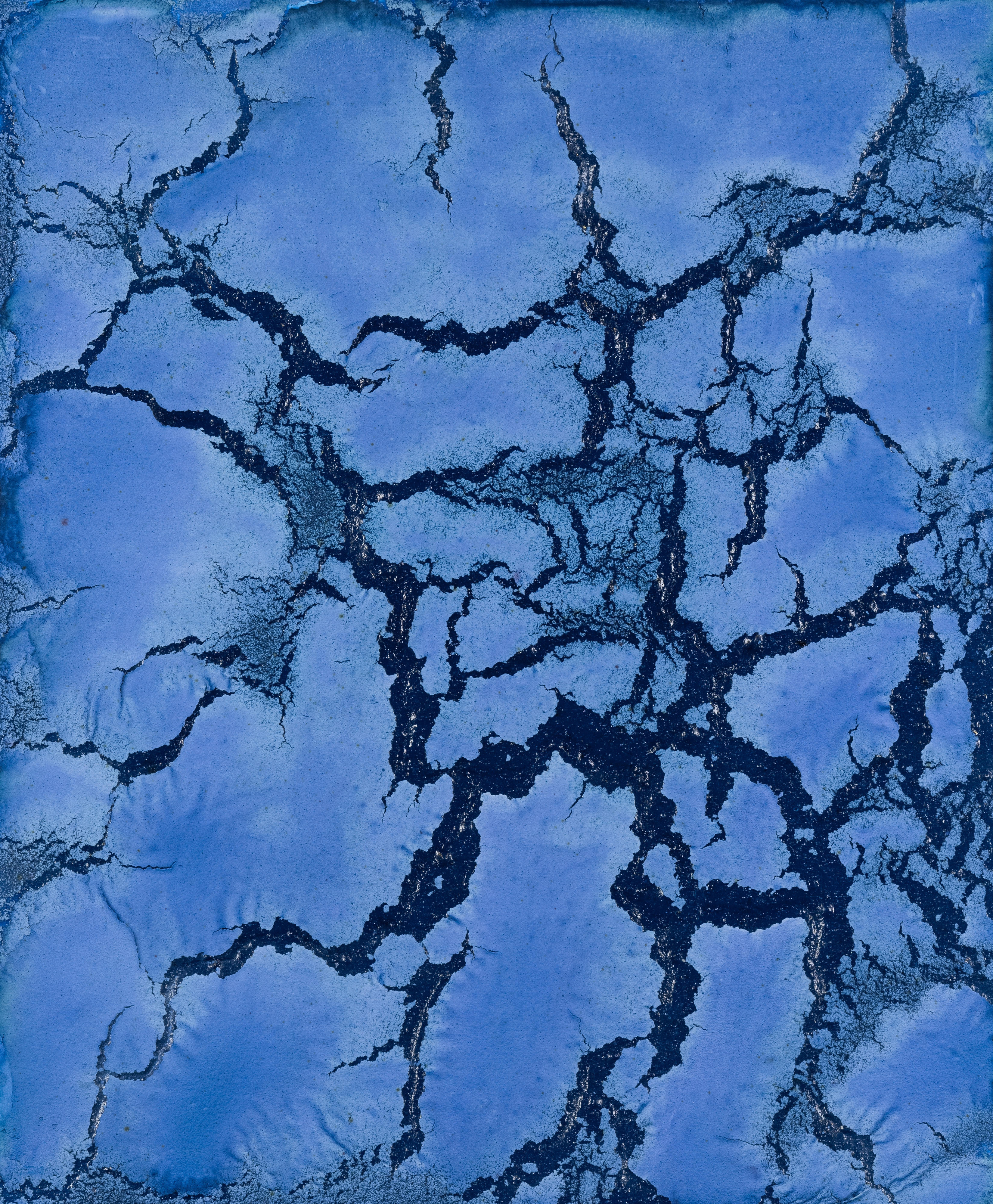 This work is part of Pastor's most celebrated body of work, Bleu Monochrome. His signature abstract paintings are made from raw pigment, carefully sourced from the mountains of Morocco, which the artist then applies to the canvas in a gestural, instinctive manner. The artworks are also subject to natural forces, such as rain, heat and wind, resulting in a mesmerising final appearance that evokes the purity and fragility of the oceans and the planet's waterways, or cracked, arid earth. With his artworks, Pastor aims to effect change, causing us to remember our responsibility to care for the natural environments of the world.