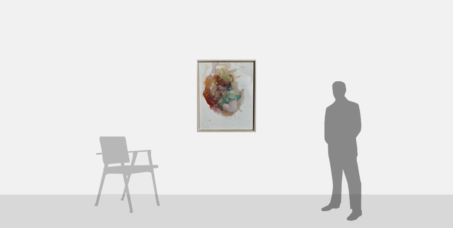 This painting is based on the magnificent Strokkur Geyser in Iceland, which erupts in jets of hot water up to thirty metres high, every ten minutes. The swirling movement of the paints, radiating from the centre, evoke the explosive energy of the Geyser, while the crusted and cracked pigments reflect the complex geology of the Icelandic region. The fusion of earthy reds and metallic greens convey the mineral richness of the volcanic geysers, creating a vibrant burst of colours surging across the painting.