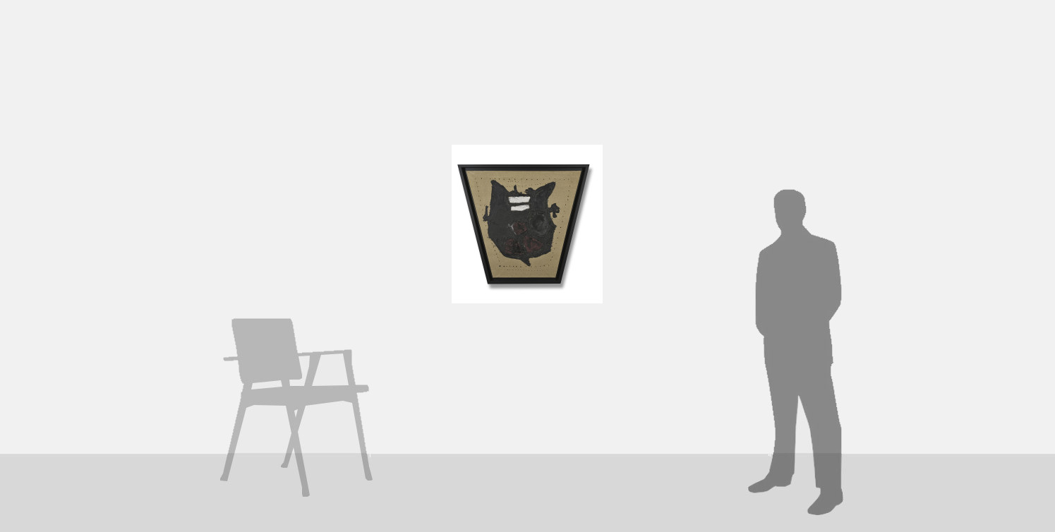 Concetto spaziale is a rare trapezoidal canvas from Lucio Fontana’s celebrated Barocchi series, created during the mid-1950s. Of these works, it is one of only five created on a shaped rather than rectangular canvas, another of which is in the Museo Nacional de Bellas Artes in Buenos Aires. Crowned with two white bars, the irregular, primal form, with its black impasto core dotted with his glittering lustrini, becomes a rich vortex of impenetrable physicality. Further, rows of delicate holes surround the cambered body, each punched directly into the canvas forming thin ribbons of perforated light. Although Concetto spaziale was created in 1956, Fontana retrospectively dated this work to 1952, inscribing the year on both the front and back of the canvas.