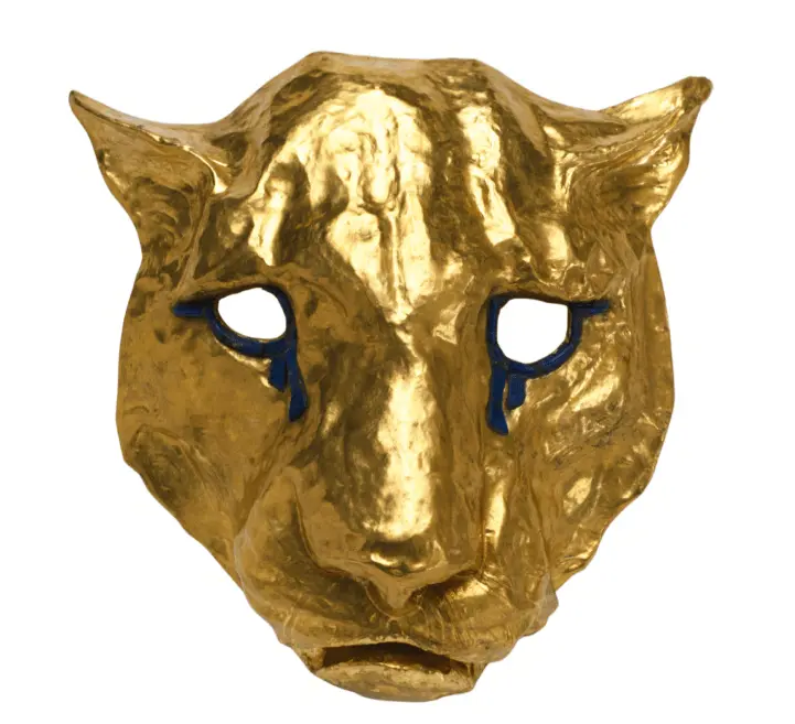 This mask-like golden head of a puma is both dazzling and arresting, its lustrous surface beguiling the viewer while its hollow, unseeing eyes add a haunting, almost supernatural quality. In creating this piece, the artist was inspired by the ancient Inca civilisation, who regarded the puma as a symbol of strength and wisdom. The artwork also takes name from the ancient Inca capital city of Cusco, that is said to have been built in the shape of a puma.