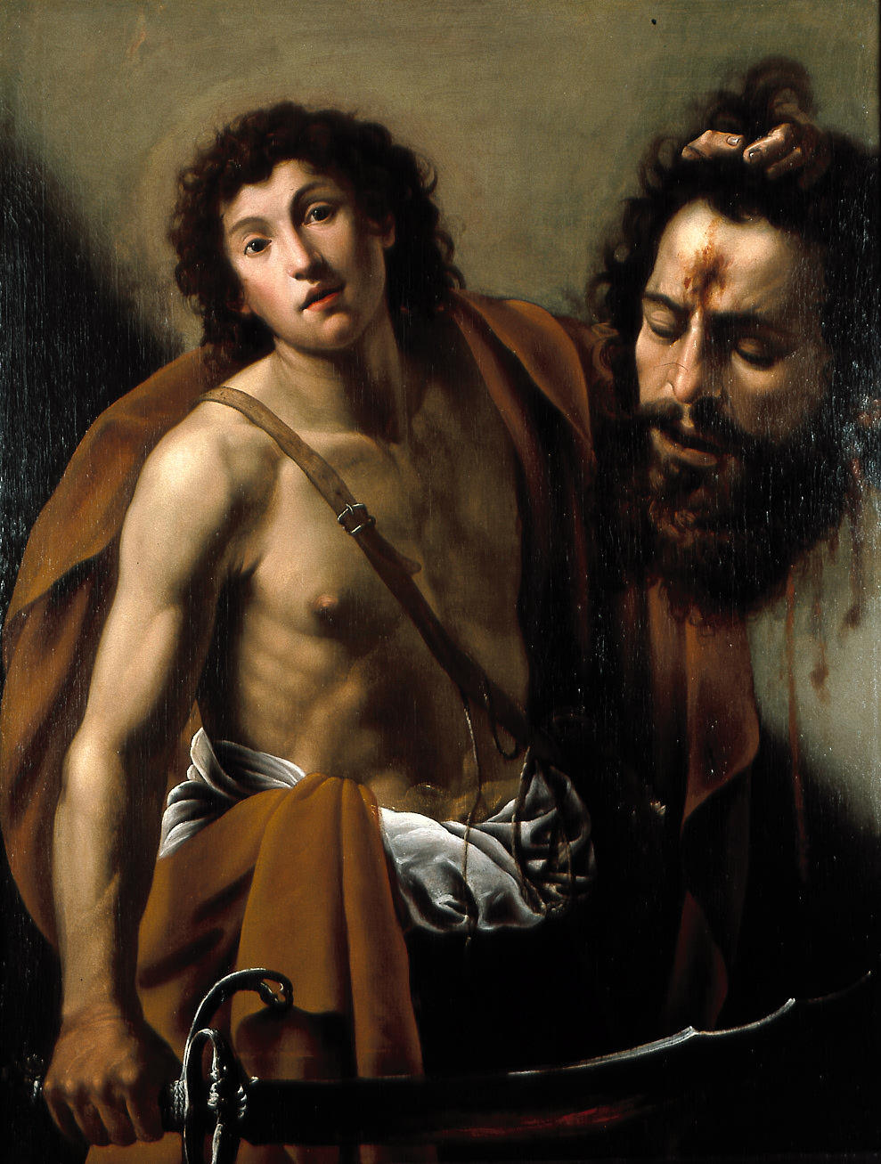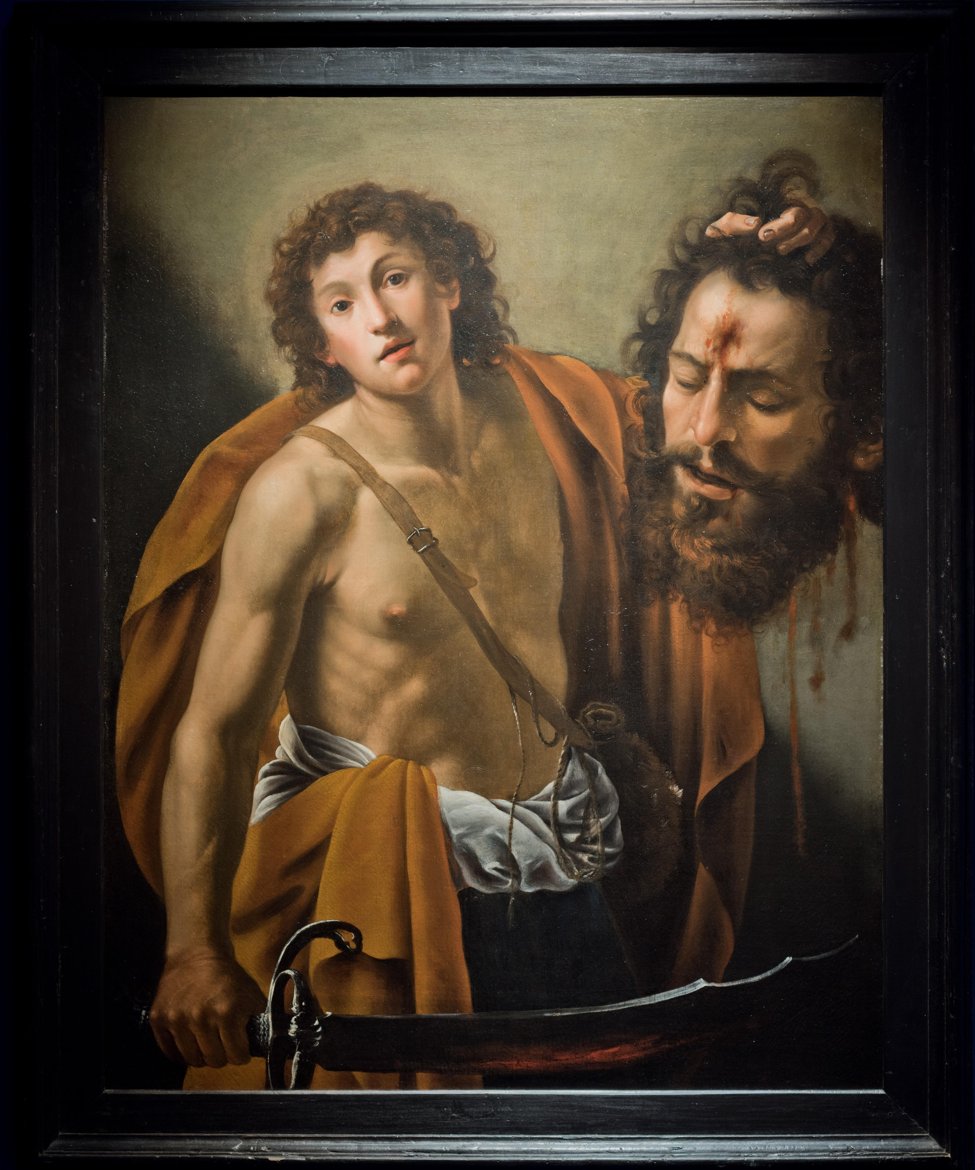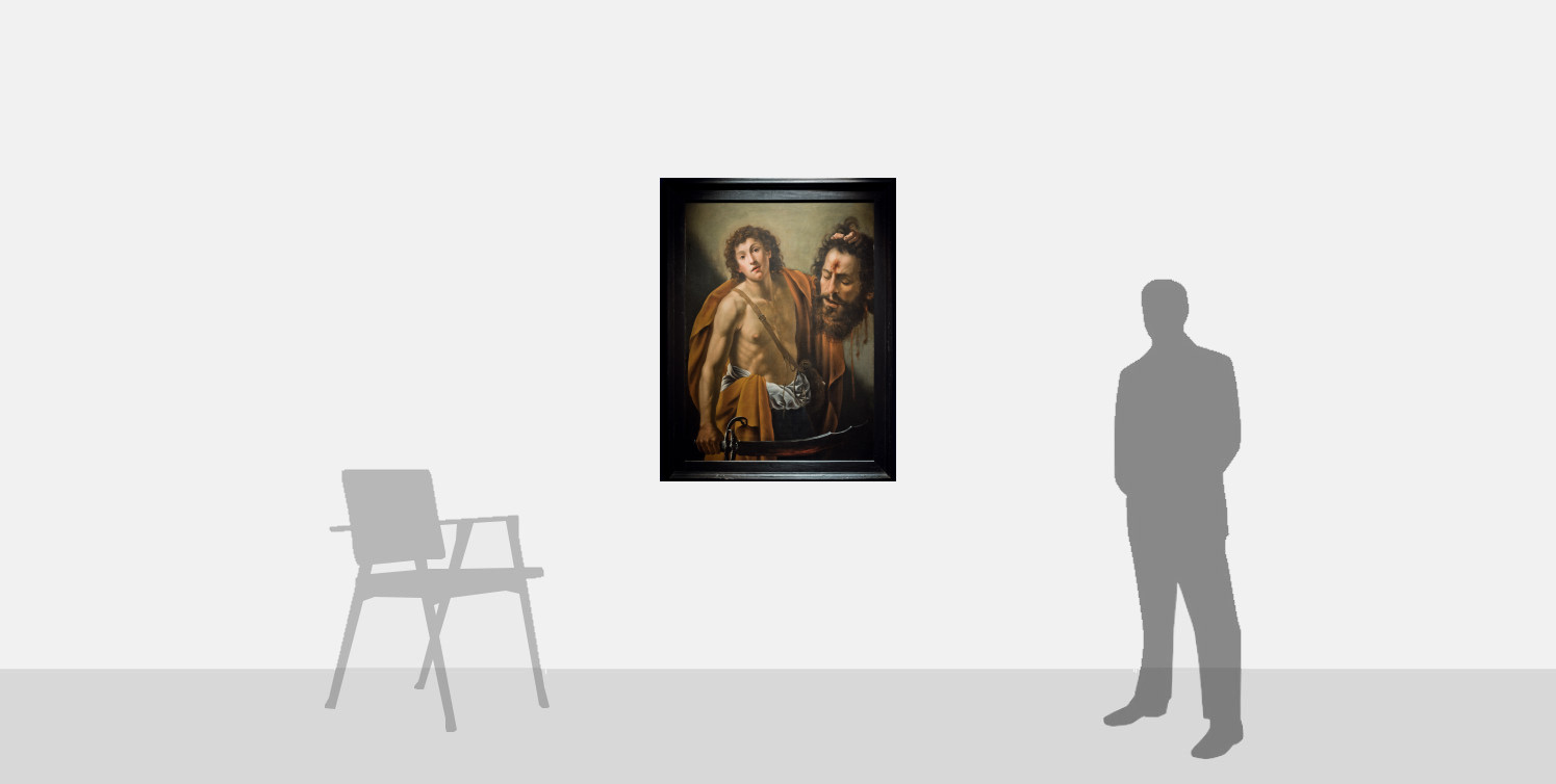 Vermiglio’s painting is clearly indebted to Caravaggio’s famous renditions of this subject, one of which is in the Galleria Borghese in Rome, and the other in the Kunsthistorisches Museum, Vienna. Vermiglio would have had the opportunity to study these innovative paintings shortly after they were created. Following in Caravaggio’s footsteps, he travelled from his native Lombardy to Rome in 1604, and like many artists of the day began to emulate Caravaggio’s dramatic and ground-breaking style.