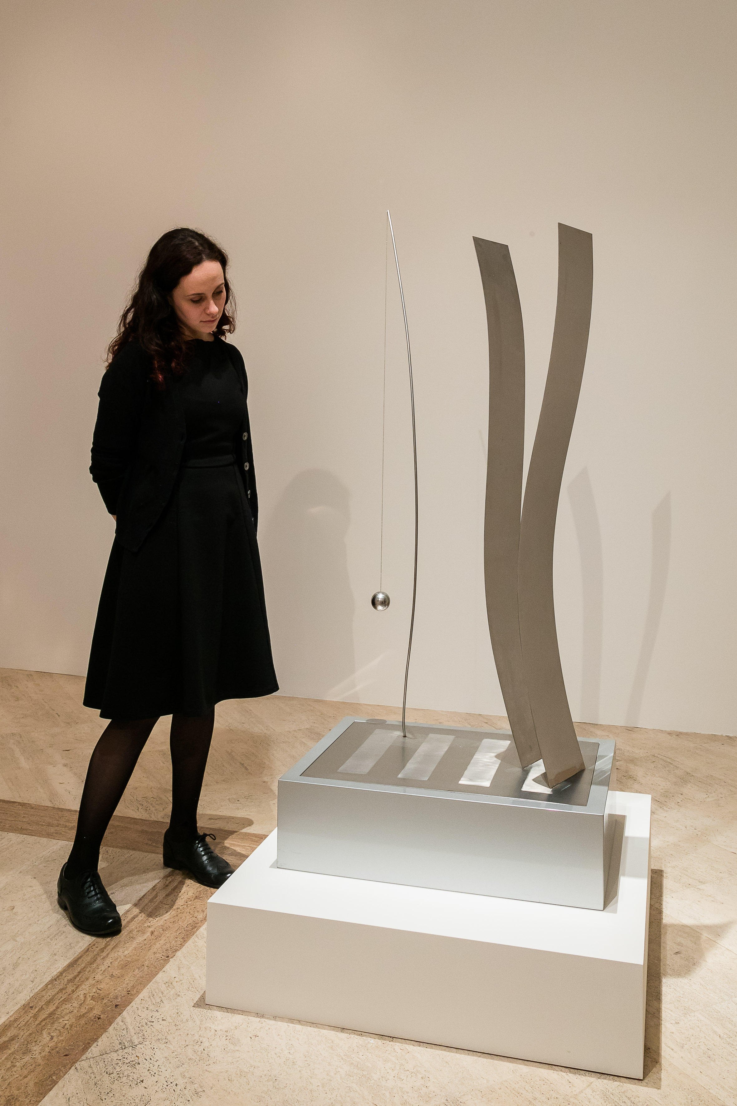 Coming of age in pre-war Milan and living through the horrors of the Second World War, Melotti metabolized wartime devastation in his work by returning to Renaissance principles of harmony, order, geometry, and musical structure, which he integrated into a highly personal yet universally accessible artistic language that expresses the full range of emotional experiences in modern human existence. Encapsulating Melotti’s lyrical approach to sculpture, the curved and spiralling note-like forms here appear to move through the air, with their lines and shapes suggesting a complex orchestra of melodies and registers. Melotti’s late work of the 1970s and 1980s is characterized by rhythmic geometric forms with an underlying humanist narrative that bridge the threshold between the figurative and the abstract with their curator Douglas Fogle describes as “quivering just on the threshold between the solidity of figuration and the immateriality of abstraction”.