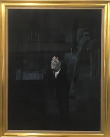 Bacon tended to use photographs of people in his close circle as subjects for his paintings, preferring to work from pictures rather than a model. As he said, “What I want to do is to distort the thing beyond the appearance, but in the distortion to bring it back to a recording of appearance.” The Man in Blue series was one of the very few Bacon painted from life. The artist described how, apart from the presence of a model, painting a stranger went against his desire to capture all the sensations arising from intimate knowledge of the person he was painting. From this point of view, the men of the Imperial Hotel were extremely problematic, so the features of his lover Peter Lacy seem to emerge behind the archetypical figure of the businessman in a white collar.