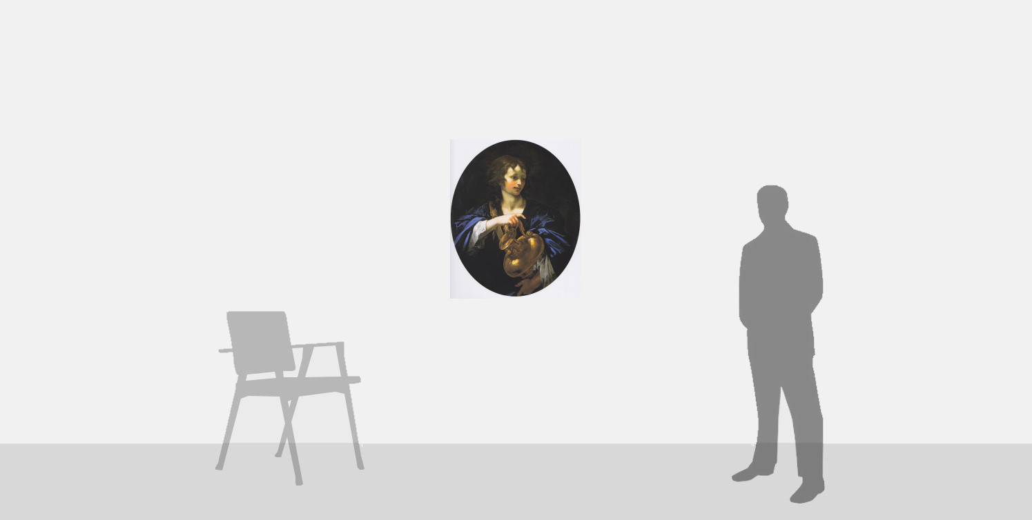 This group of paintings includes some of the most famous and representative images of Franceschini’s activity, a gallery of sensual and elegant young ephebes, virtually emblematic of Ferdinando de' Medici's Florence, rendered with exquisite colouring, as in the present painting where the light striking the bronze vase illuminates with reflections the rosy complexion of Hylas and his blue cloak.