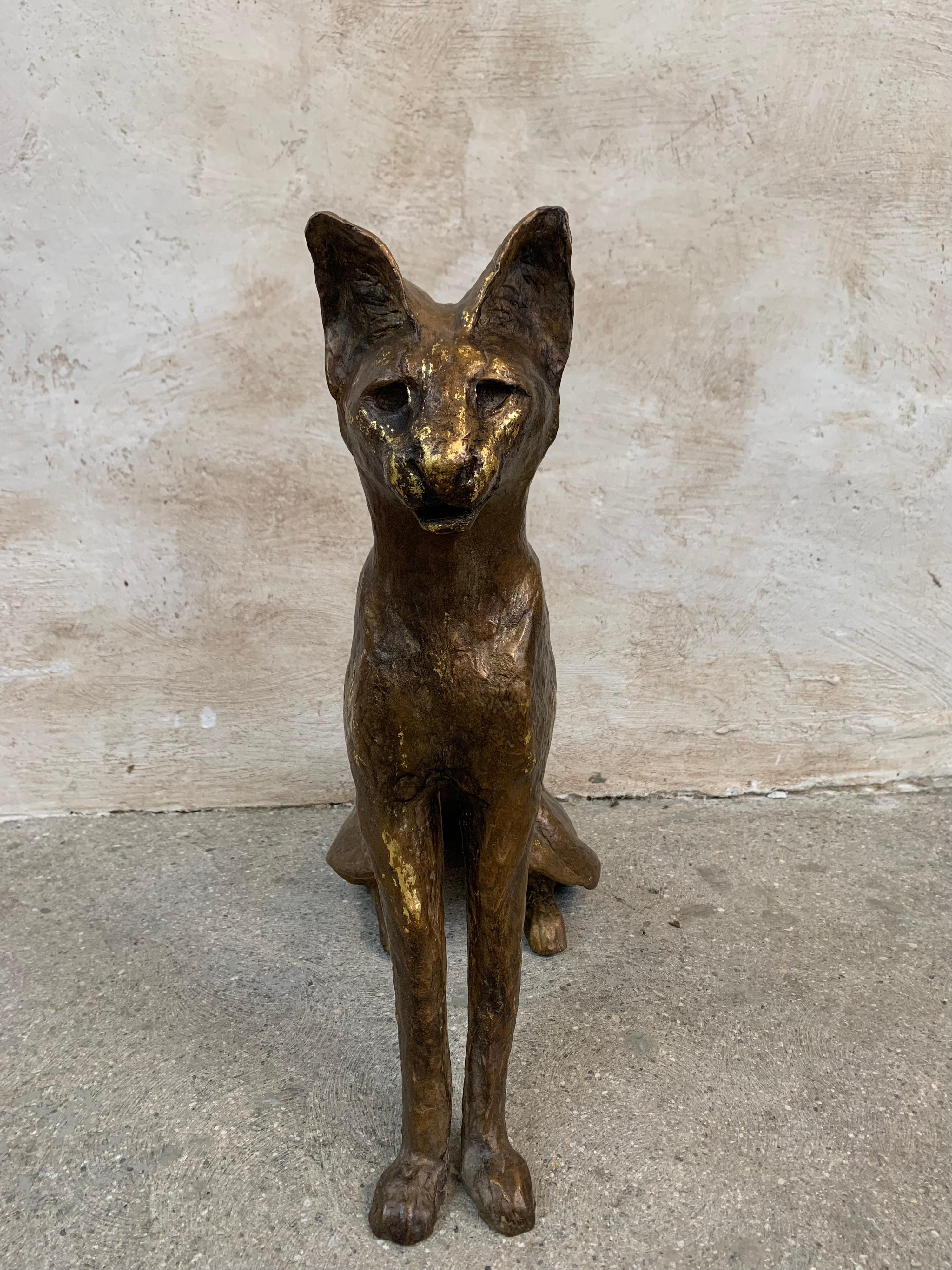 This petite sculpture is a sensitive rendering of the Lepitailurus Serval, a wild cat native to Africa that was worshipped by the Ancient Egyptians as a deity. The creature appears to wait pensively, its noble serenity underlining these sacred associations. Servals were kept as pets by high-ranking Egyptians such as scribes and priests; indeed, the artist herself has a domesticated serval, Mandela, who lives alongside her at her home in Switzerland. Harumi's daily observation of this enchanting animal has given her an intimate and sensitive understanding of its physical form and attributes. This knowledge has breathed life into her depiction of the animal, with ears pricked to attention and tail curled around its hind legs, giving the sculpture a domestic familiarity that alludes to its long association with humans.