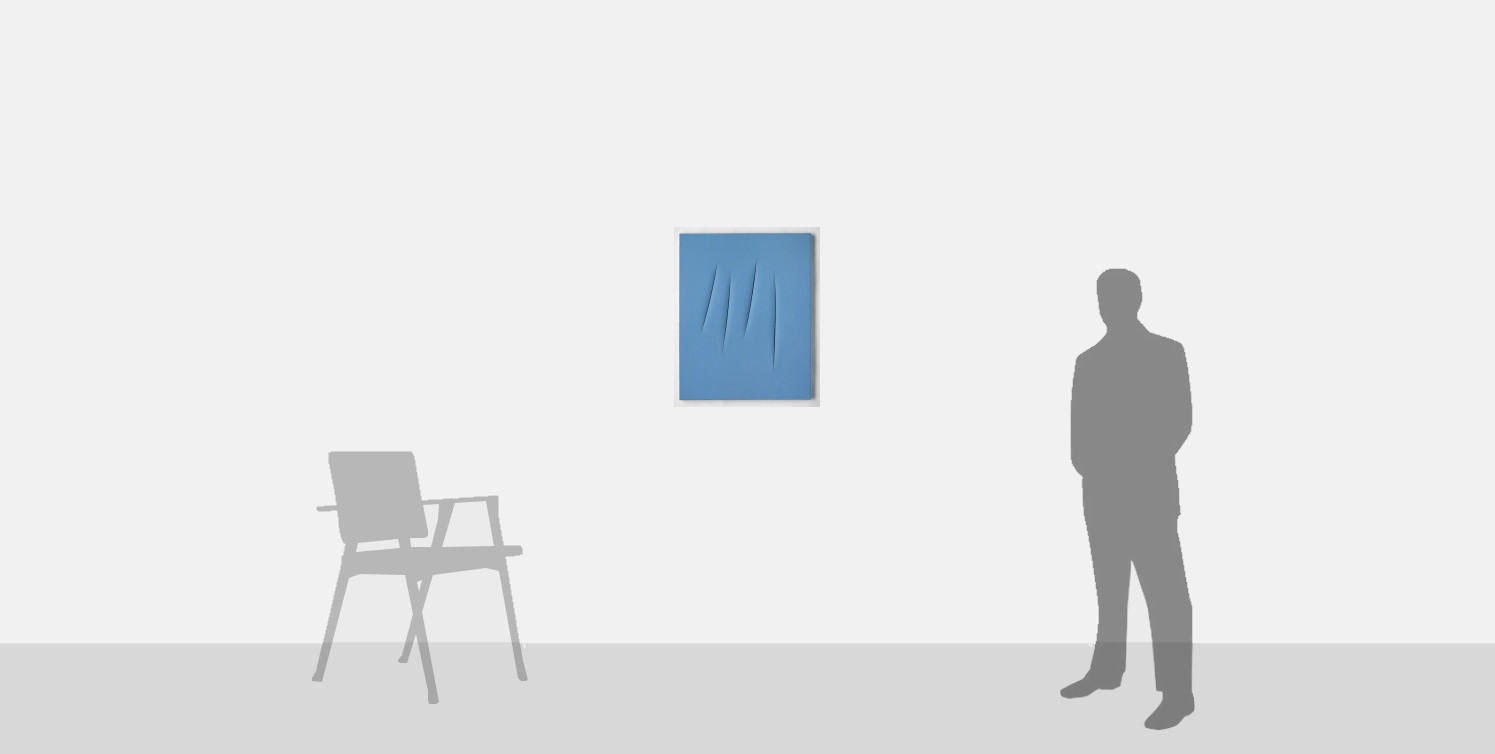 Executed in 1967, the present work came into being at the very height of Fontana’s career, a year after he was awarded the first prize for painting at the XXXII Venice Biennale, and almost ten years after the execution of his first slashed canvases. The technical perfection that he had achieved at this late stage of his career enabled him to successfully create this beautifully balanced and rhythmical composition.