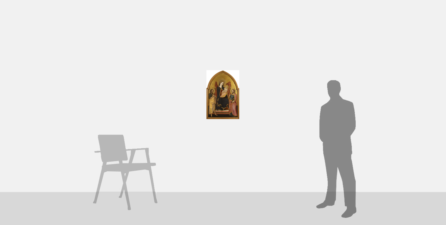 The present painting, auctioned in London in 1980 with a generic attribution to the Florentine school, was ascribed to Alvaro Pirez by Miklós Boskovits and first published by Daniela Parenti in the catalogue of the exhibition on the painting in Lucca held in 2008. Parenti dated the painting around 1410–15, noting that the panel combines features of Pirez’s early career, such as the bulky figure of the Virgin, with more modern elements, for example the elegant detail of showing the Baptist’s hand draped in the saint’s own mantle, a motif derived from Lorenzo Monaco.