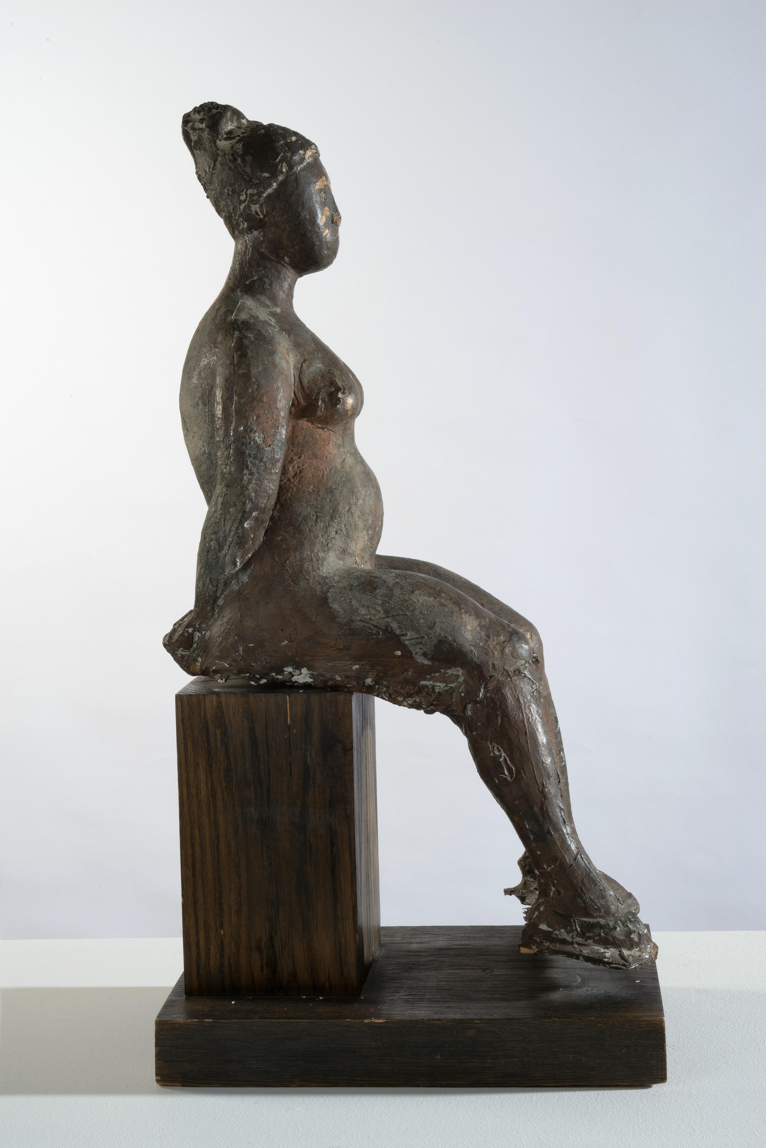This Piccola Giuditta belongs to the series of elegant statues modelled on the example of classical and medieval sculpture. In this period, Marini found a renewed interest in Gothic and early 15th-century sculpture and utilised the important expressive lesson of the masters of the past for the purposes of monumental solidity and emotive power. Figures such as the present work were conceived in the tradition of antiquity but implemented with a different, modern feeling: an intelligent balance between sensuality and stylization. By experimenting with his figures’ poses, Marini aspired to the “architectonic realization of pure forms in space”, reducing the volume to its absolute essentials. A pictorial parallel of Marini’s geometrical structures can be found in Giorgio Morandi’s Still Lifes. Like Morandi, Marini thinks in pure forms solidly anchored in a balanced conception of plastic volumes and emotional tension.
