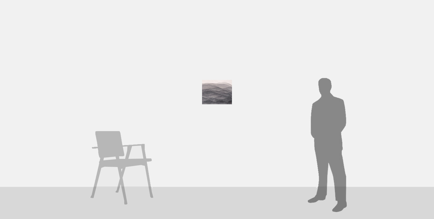 Mountain is made using the artist's signature mediums of ink, watercolour and Hanji paper. The work is an example of brush and ink painting in its purest form, using only a single colour, and investigating the balance between pigment and paper, opacity and transparency.