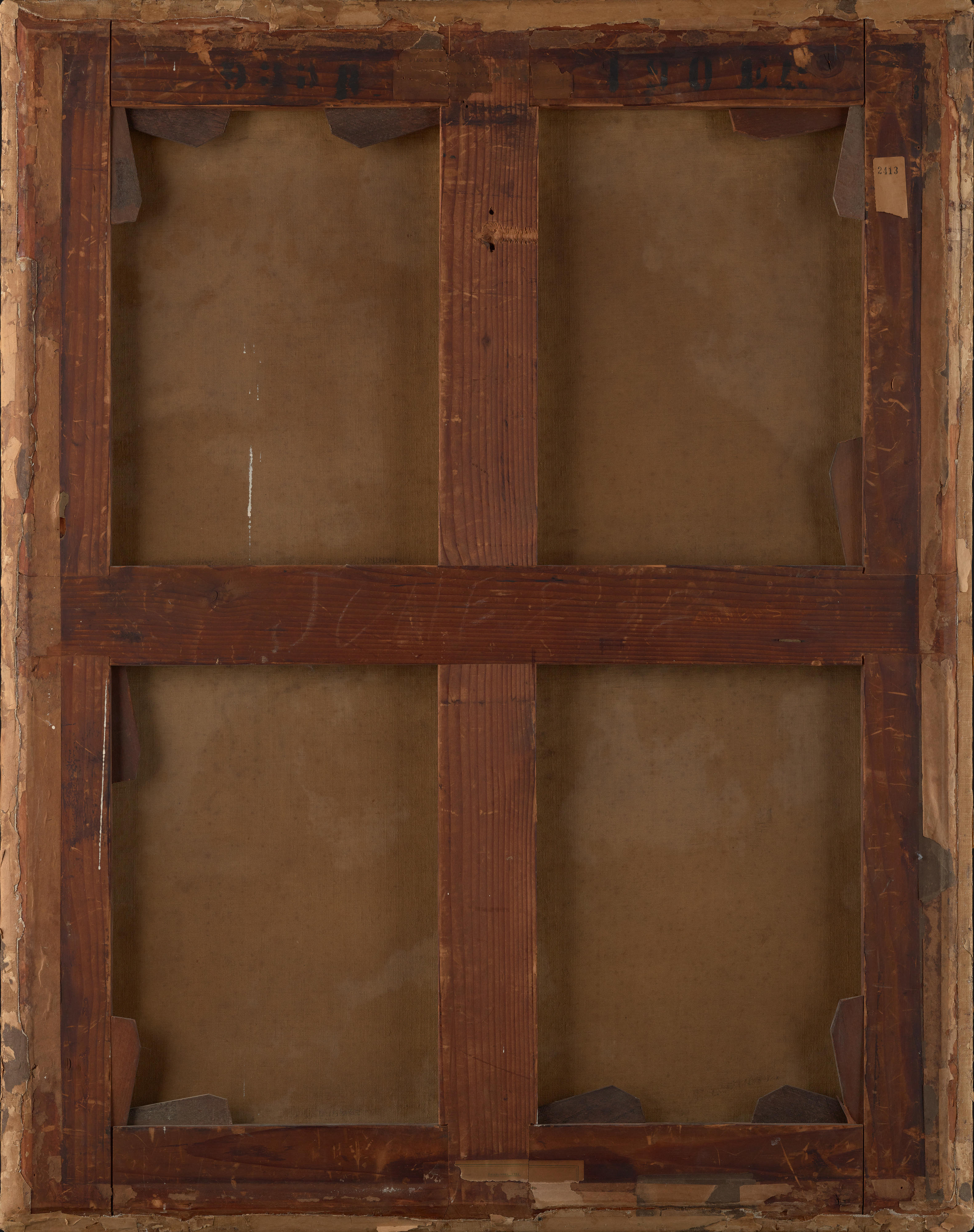 Although the Tate painting is almost certainly the initial version, our painting was engraved by William Nutter in 1801 as ‘the original’, reflecting its importance in Reynolds’ oeuvre (fig. 4). Indeed, the painting remained in the artist's possession until his death, indicating his high regard for the picture. The provenance of the painting, however, has been somewhat confused in the literature. Our painting is recorded twice in David Mannings’ catalogue raisonné on the artist under both 854a and 854d (which in fact both refer to our painting), with slightly different dimensions in each entry. Mannings did not have access to the reverse of the present painting and noted that some of the entries listed could refer to the same picture. Recently, it has been discovered that the stretcher bears the stencil numbers 993B and 190ER as well as the chalk mark “June 8/28”. These relate to the Christie’s sales on 18 May 1821 and 8 June 1928, giving a clearer picture of the provenance and thereby confirming that the two entries mentioned above in fact relate to this single painting (these sales are listed separately under 854a and 854d in Mannings). For the four possible versions listed in Mannings which are listed: (854) the Tate version, gifted by William Bart Agnew to the Nation; (854a) is the present painting; (854b) is incorrectly identified and is a different composition of a Satyr and Bacchante sold in the Thomond Sale as lot 24; (854c) is a 19th-Century copy of this painting in the Sudeley Castle Collection; (854d) is also the presentpainting. Further documentation about the history of the painting is preserved in the Agnews archive, who were in possession of both the present painting and the Tate painting simultaneously in 1874.