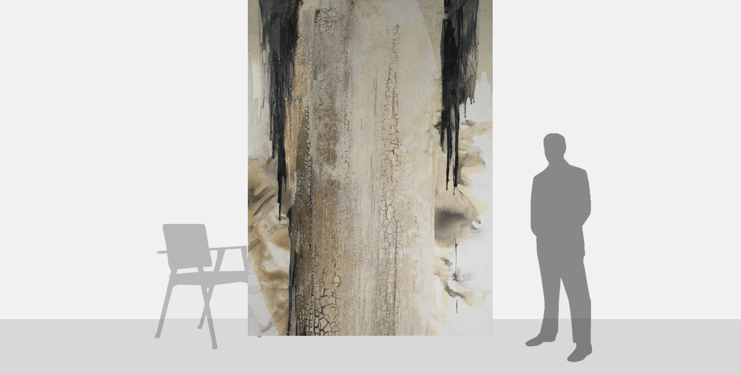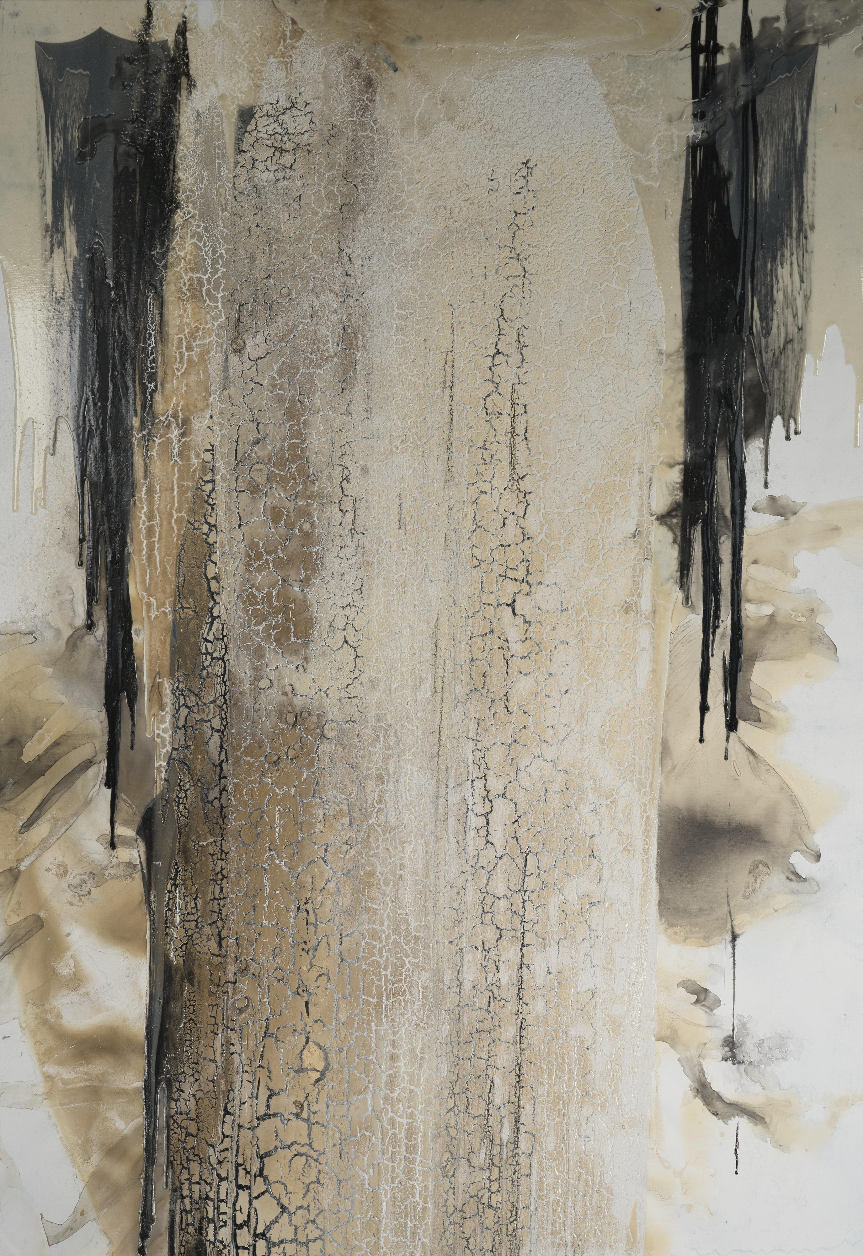 Polo Nord encapsulates the artist's expressive and intuitive approach to painting. The vertical striations appear like cracks in the polar ice fields, evoking the fragility of this immense environment. Pastor's abstract compositions are made using natural pigments, which the artist sources from Morocco. He was inspired to work with raw pigments following a visit to the Lascaux Cave in France which showed how our ancestors sought to make sense and depict the world around them.The essence of Pastor's paintings are linked to his desire to raise awareness of the need to protect our planet, evoking the beauty and the precarity of the natural world. The artist also integrates the environmental elements into the very fabric of his paintings; after applying paint to the canvas, he often exposes the pieces to rain, wind and fire, allowing these natural processes of change and weathering to shape the final outcome of the work.