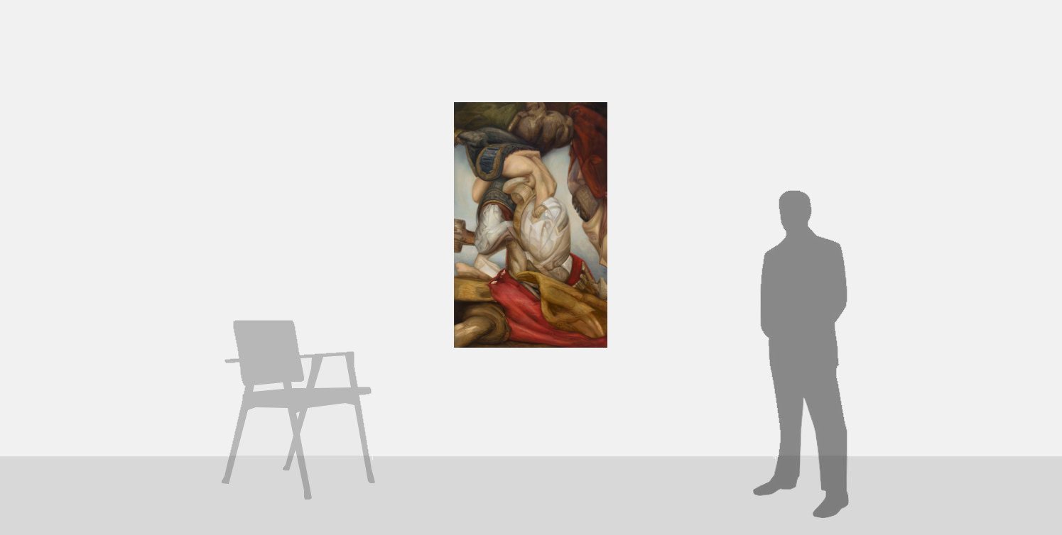 Santos’ inspirations are drawn from the more awkward or subversive corners of art history, such as Old Masters who were the eccentrics of their era, such as Giuseppe Arcimboldo, or those whose style was at odds with conventional beauty, such as El Greco or Francisco Goya. Further, his paintings take influence from the fleshy forms of Peter Paul Rubens and the expressive grandeur of Michelangelo and Raphael.