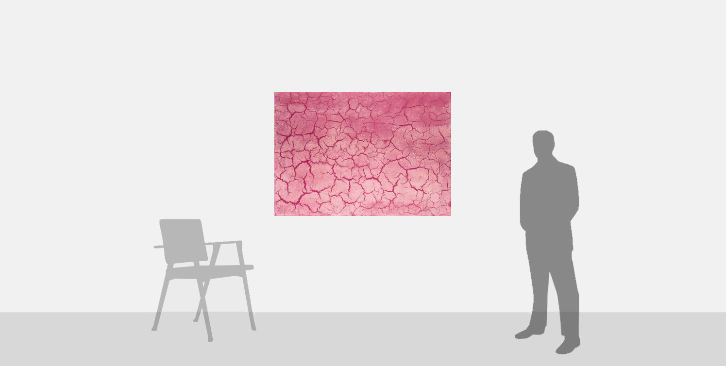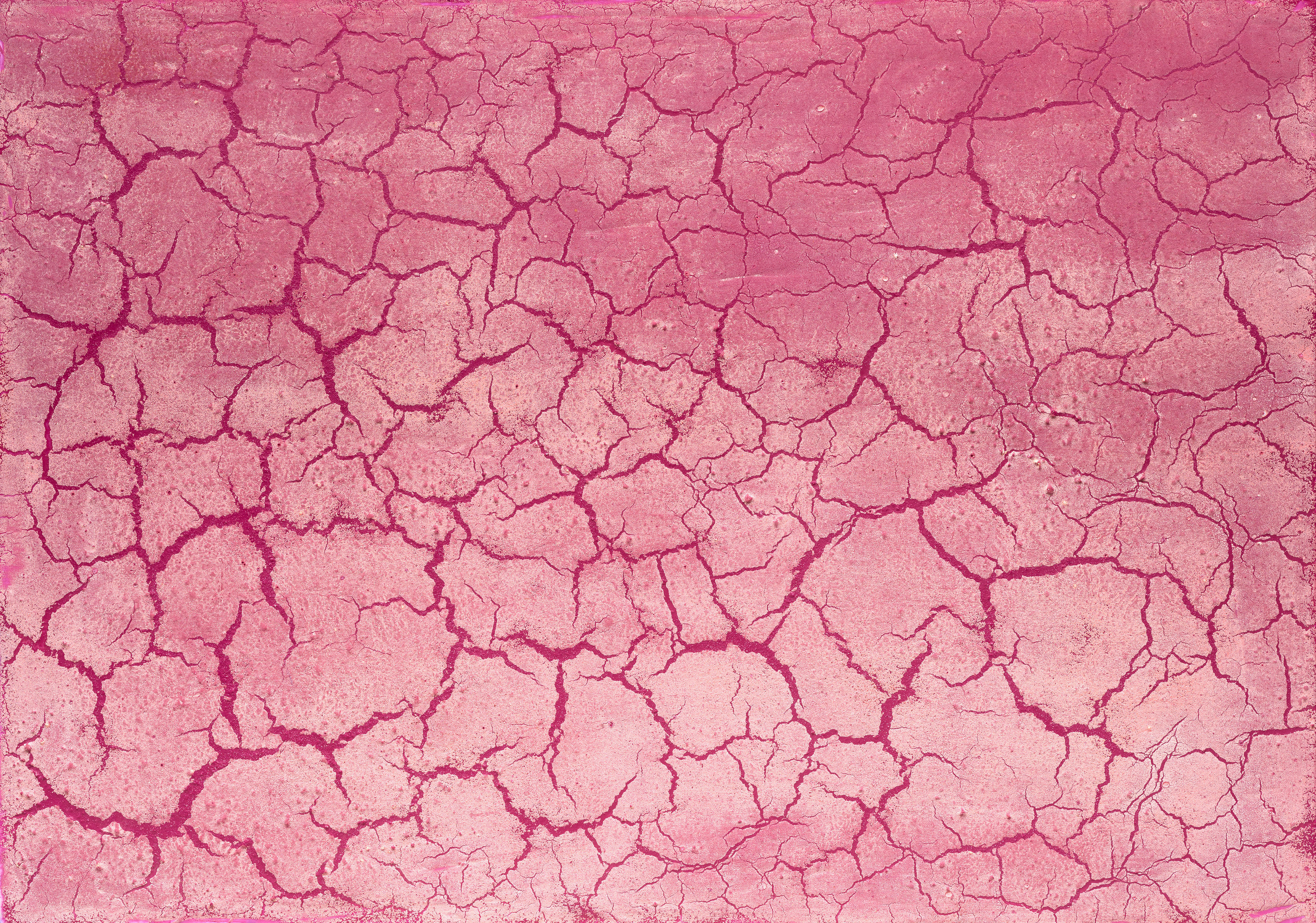 The essence of Pastor's paintings are linked to his desire to raise awareness of the need to protect our planet, evoking the beauty and the precarity of the natural world. Rose Bonbon is at once alluring, with its soft pink hues associated with love and sweetness, but also shocking in the cracking of the surface which appears like rose-tinted scorched earth, destroyed by drought.