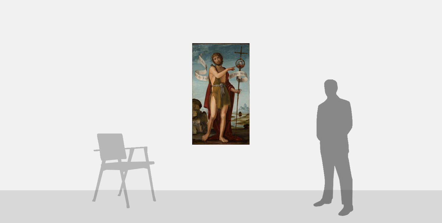 This large panel is almost entirely filled by the monumental figure of Saint John the Baptist, depicted standing in a wild landscape with a winding river and distant mountain range. The work was omitted from studies on Lombard painting throughout the twentieth century and it was only after an auction at Sotheby's in 2020, where it was presented with the correct attribution to the painter Bernardo Zenale, that it became the subject of extensive study by Professor Stefania Buganza, which we summarise here.