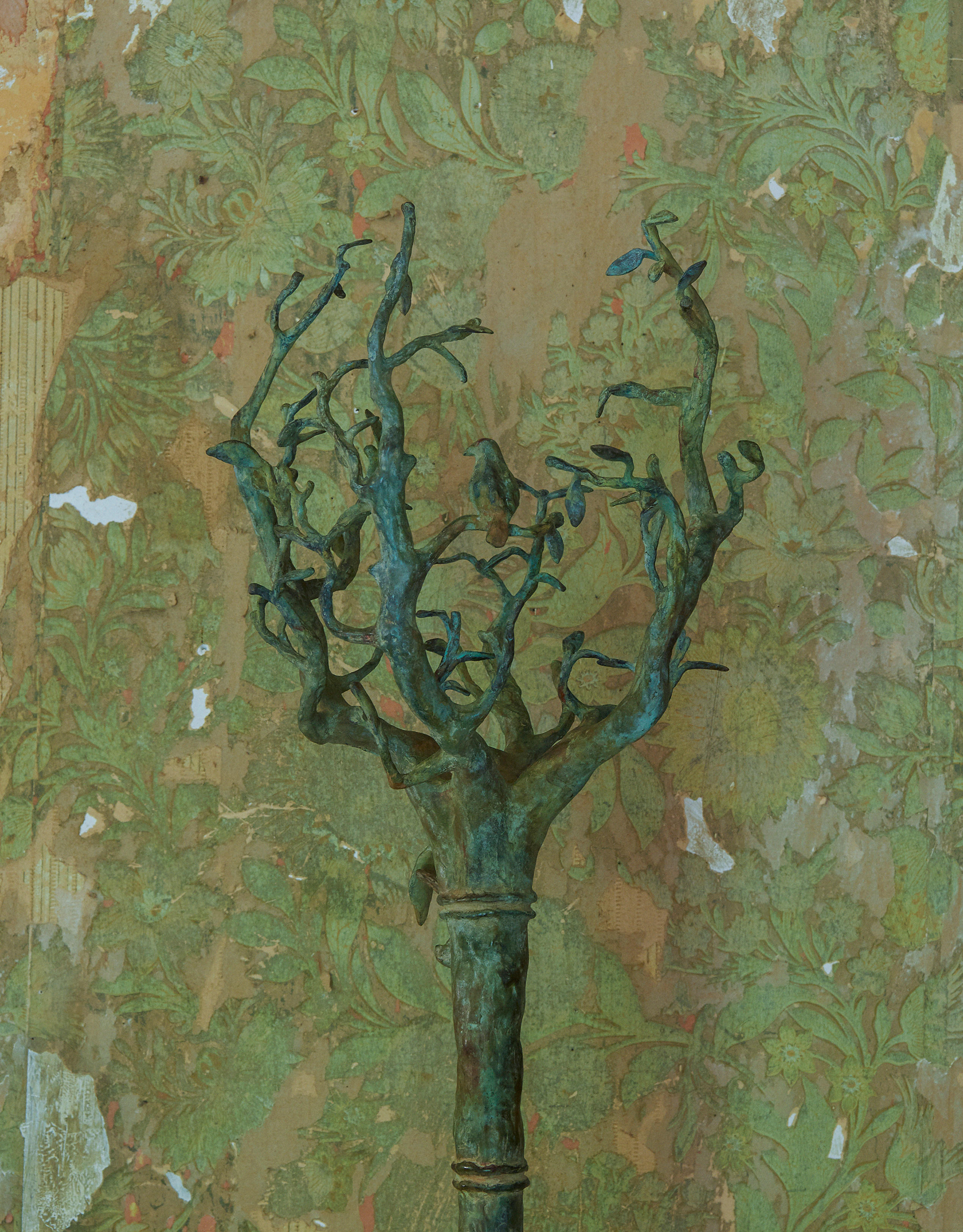 Cast in bronze with vert de gris patina, the tree also mirrors nature, the strength of the metal paying homage to the weather-beaten resilience of the trunk and the more slender branches. Harumi's deft crafting of the sculpture, however, simultaneously endows the work with a delicate vulnerability that reminds us of the need to respect and protect these beings.