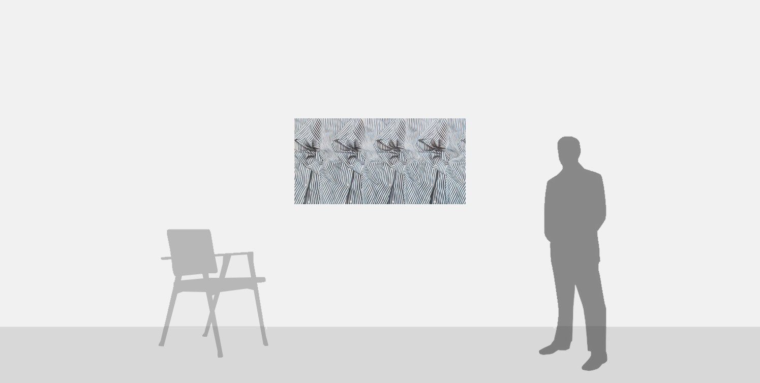 Clarke’s practice aligns him with a wider group of artists exploring the intersection of fashion, art, value, and the market. He is fascinated by the overlapping tendencies of fashion and art, how they differ and converge; through his art he seeks to question the power of these cultural forces to shape identity and desire contemporary in capitalist society. Working in a bold, photorealist style, Clarke’s paintings often comprise a sumptuous close-up detail of a particular fabric or piece of clothing that fills the entire canvas, playing on our desires and ridiculing the commercial power of garments. Other times, his compositions consist of a representational motif that is repeated almost to abstraction, such as a section of shirt or the back of someone’s jeans. These fragments of clothing, although clearly inhabited by an unidentified person, are at once playful, eye-catching, and quietly unsettling. Clarke hints at the minimal human presence through an arm peeping from a sleeve, a nape of a neck, a hand in a pocket, yet always the clothing and its repetition remain the true subject of each work.