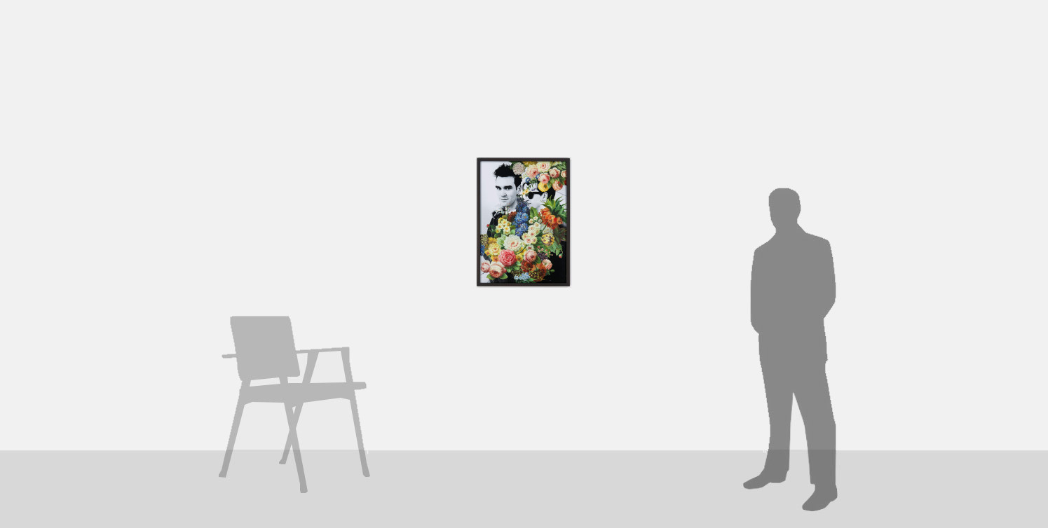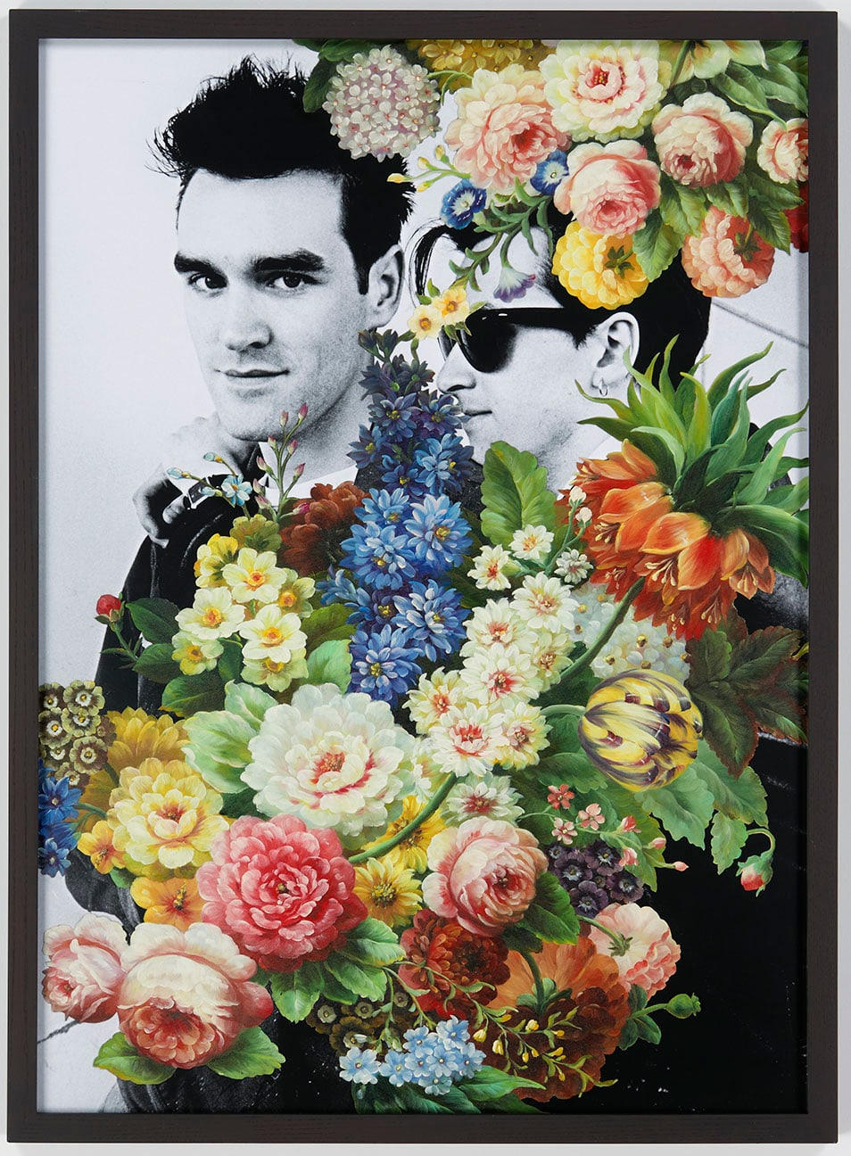 In There Is A Light That Never Goes Out the fusion of opulent, Renaissance-inspired floral motifs with the enigmatic presence of The Smiths' band members, offer a way into the work as well as a springboard to a psychological space beyond.