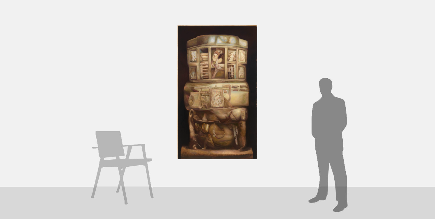 Santos’ inspirations are drawn from the more awkward or subversive corners of art history, such as Old Masters who were the eccentrics of their era, such as Giuseppe Arcimboldo, or those whose style was at odds with conventional beauty, such as El Greco or Francisco Goya. Further, his paintings take influence from the fleshy forms of Peter Paul Rubens and the expressive grandeur of Michelangelo and Raphael.