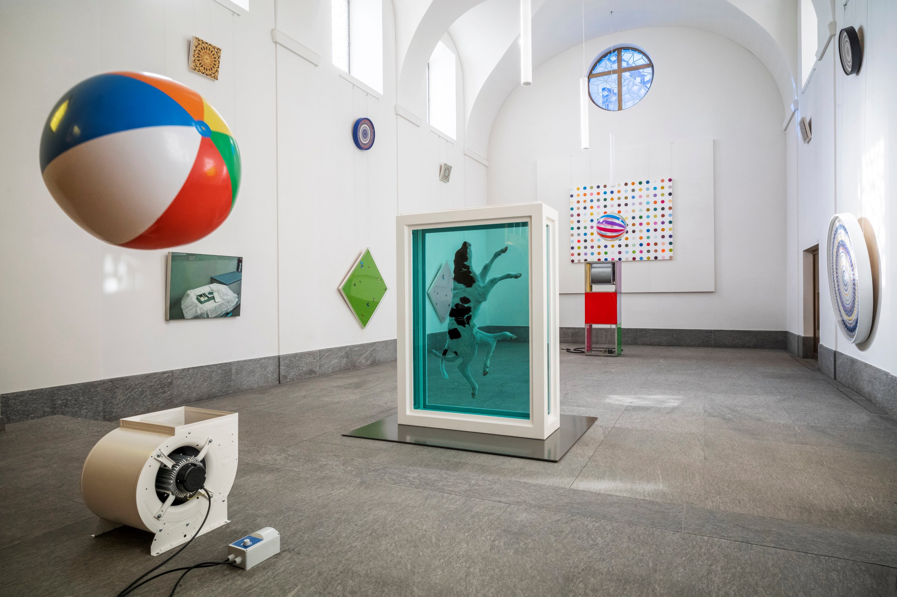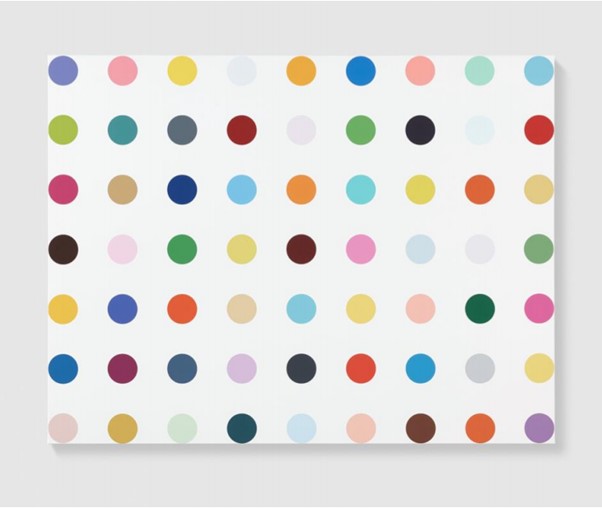 The search for aesthetic beauty in death is also evident in his much-loved butterfly paintings, in which hundreds of dead butterflies are adhered to canvas with paint in patterns evoking medieval stained glass. Likewise are his famous 'spot paintings', composed of hundreds of coloured dots arranged in grids and named after controlled substances, which pose the question: 'Is art a drug?' The notion of art’s potential for healing also permeates works in which Hirst filled medicine cabinets with pill bottles and other pharmaceutical packaging. Transforming ordinary materials and animal detritus into art objects freighted with often profound metaphysical significance, Hirst has created a highly provocative and often controversial body of work which challenges viewers to confront the paradoxical beauty inherent in human mortality.