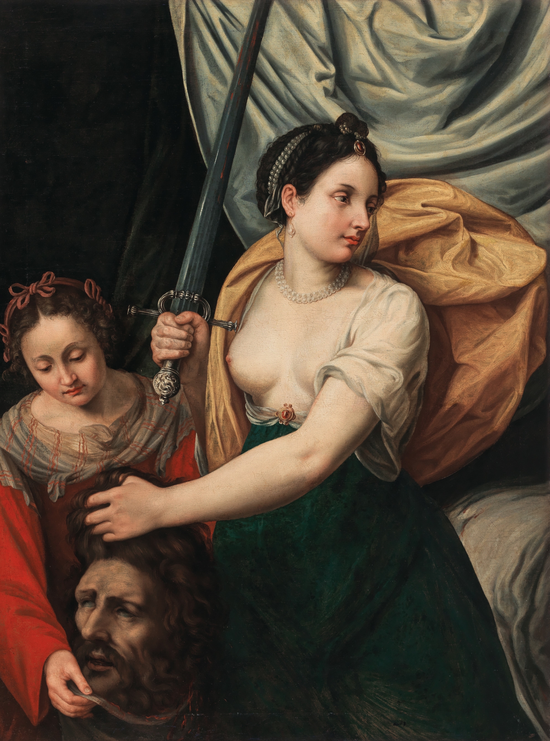 Shortly after the trial she married a Florentine, Pierantonio Stiattesi, and in 1616 she was the first woman to be accepted into Florence’s Accademia delle Arti del Disegno. While in Florence she began to develop her own distinct style, specialising in history painting – unusual for women at that time, who were generally limited to still life and portraiture. In Florence, her career flourished; she secured the patronage of Grand Duke Cosimo II and established her reputation at the Medici court.